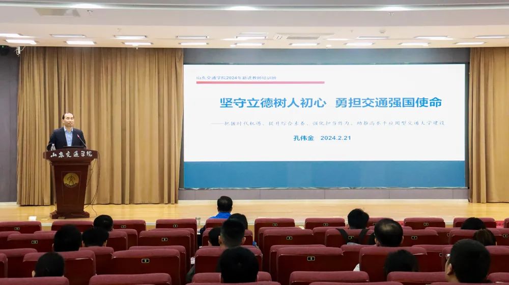 孔偉金為新進(jìn)教師作了題為《堅(jiān)守立德樹人初心 勇?lián)煌◤?qiáng)國使命》的“校長第一課”。他立足國家教育強(qiáng)國和交通強(qiáng)國建設(shè)戰(zhàn)略交匯的歷史機(jī)遇期,聚焦“科技革命和產(chǎn)業(yè)變革的迅猛發(fā)展”“時(shí)代變革與大學(xué)使命”“學(xué)校發(fā)展的八大比較優(yōu)勢”,系統(tǒng)分析了學(xué)校在全國和山東省高校的方位,闡釋了建成高峰凸顯、名師薈萃、學(xué)子向往、人才輩出、有重要影響力的交通大學(xué)的關(guān)鍵時(shí)間節(jié)點(diǎn)。