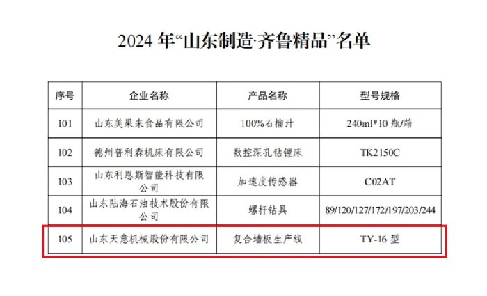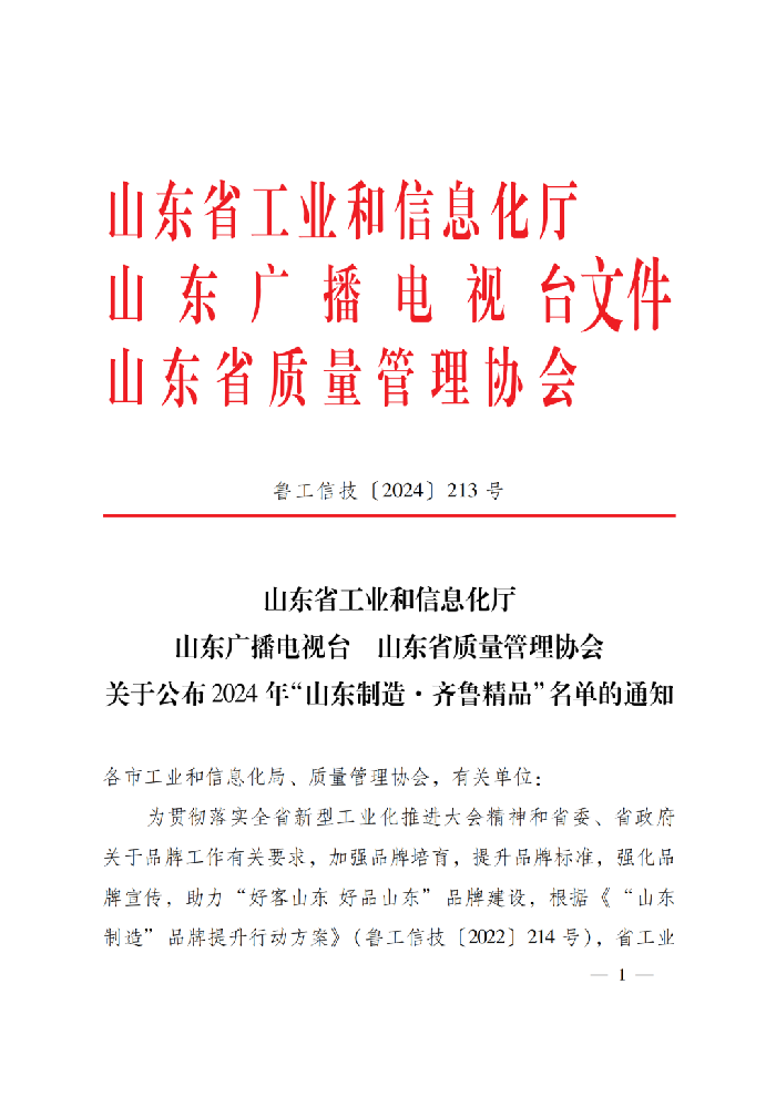 近日,山東省工信廳公布了2024年“山東制造·齊魯精品”名單,
